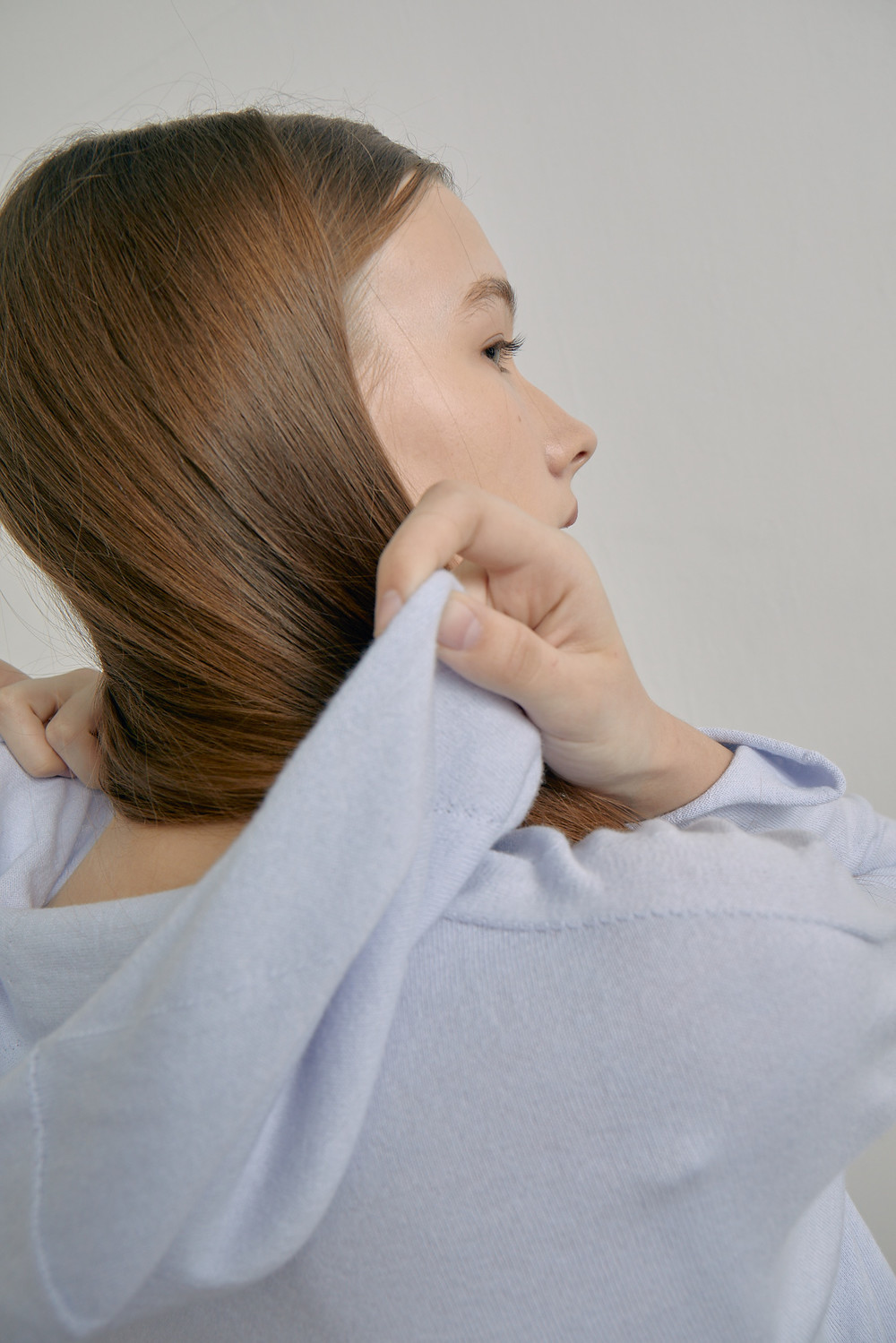 겨울에는 퍼, 무스탕, 코트 안에 입으시기 좋습니다. 끝 부분 처리기법은 자연스럽게 말려 올라가는 형태로