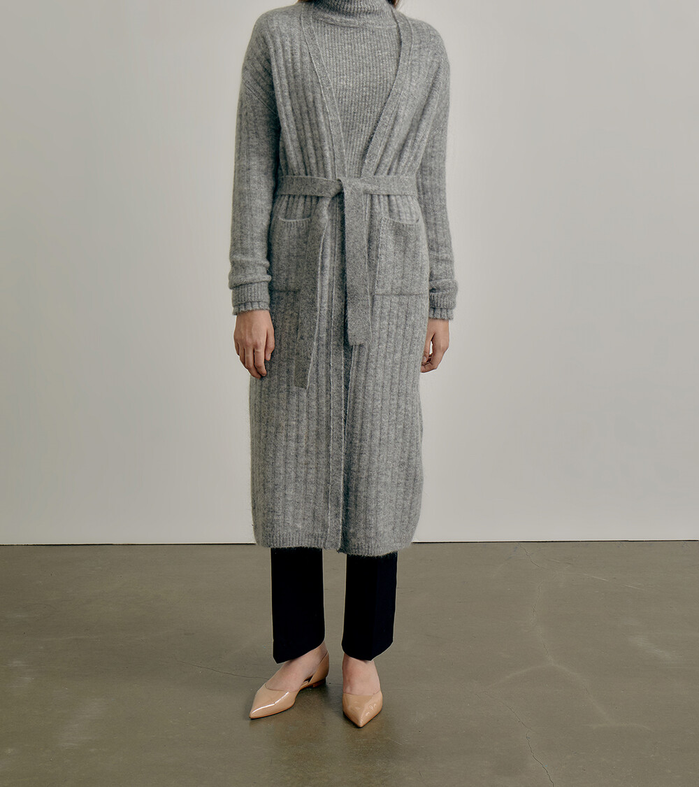 멋스럽고 포근하게 걸칠 수 있는 로브 형태의 코트 가디건을 선보입니다.