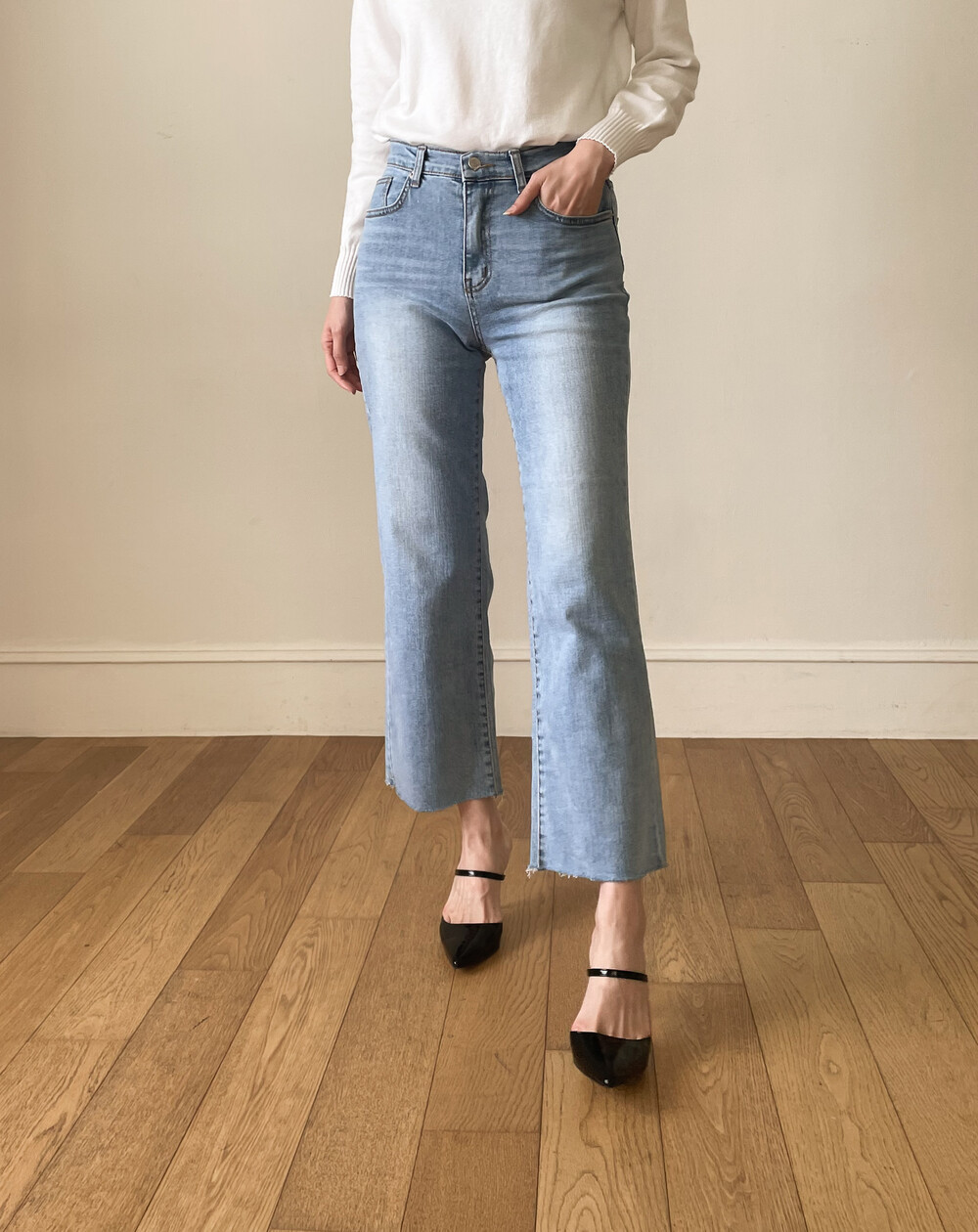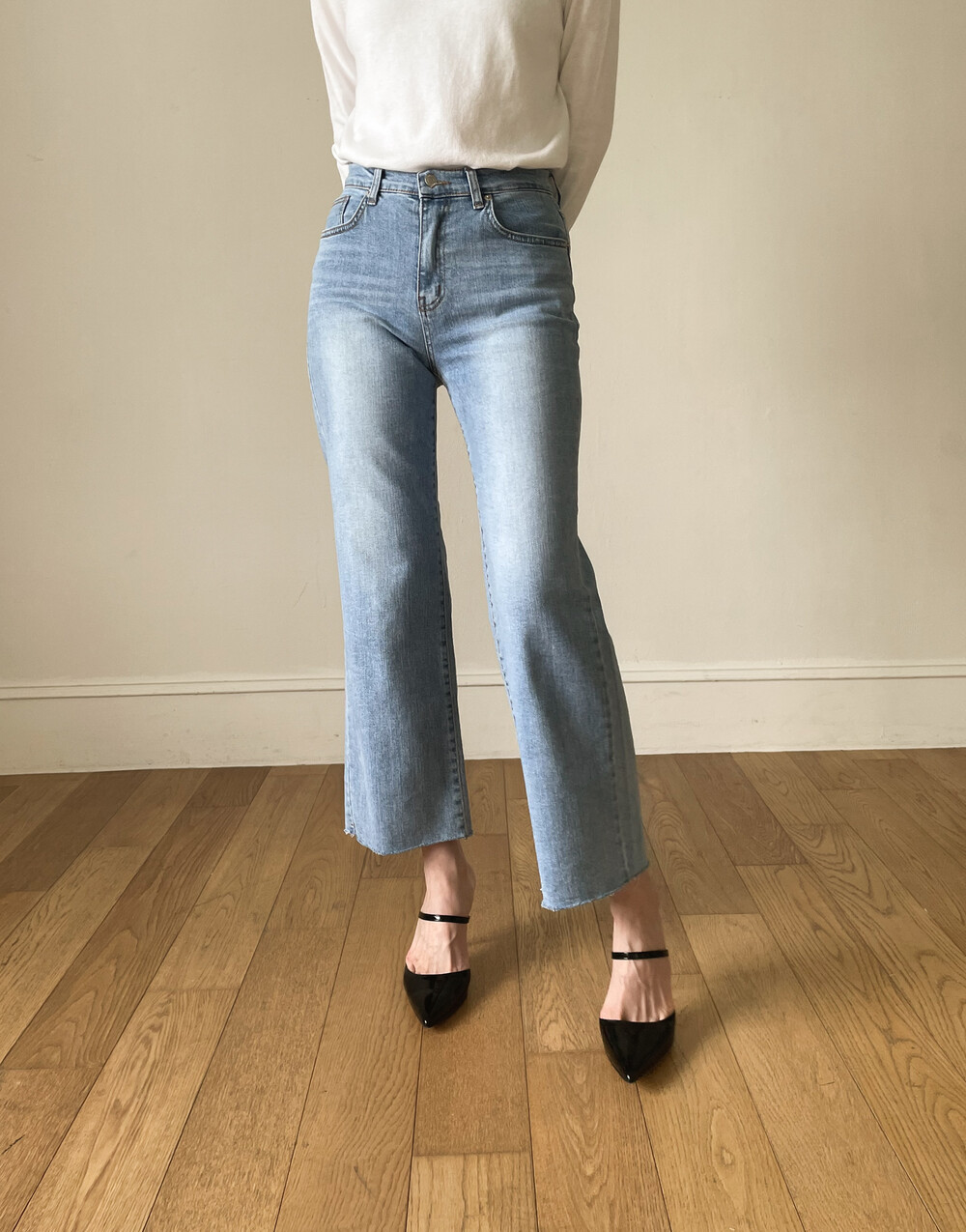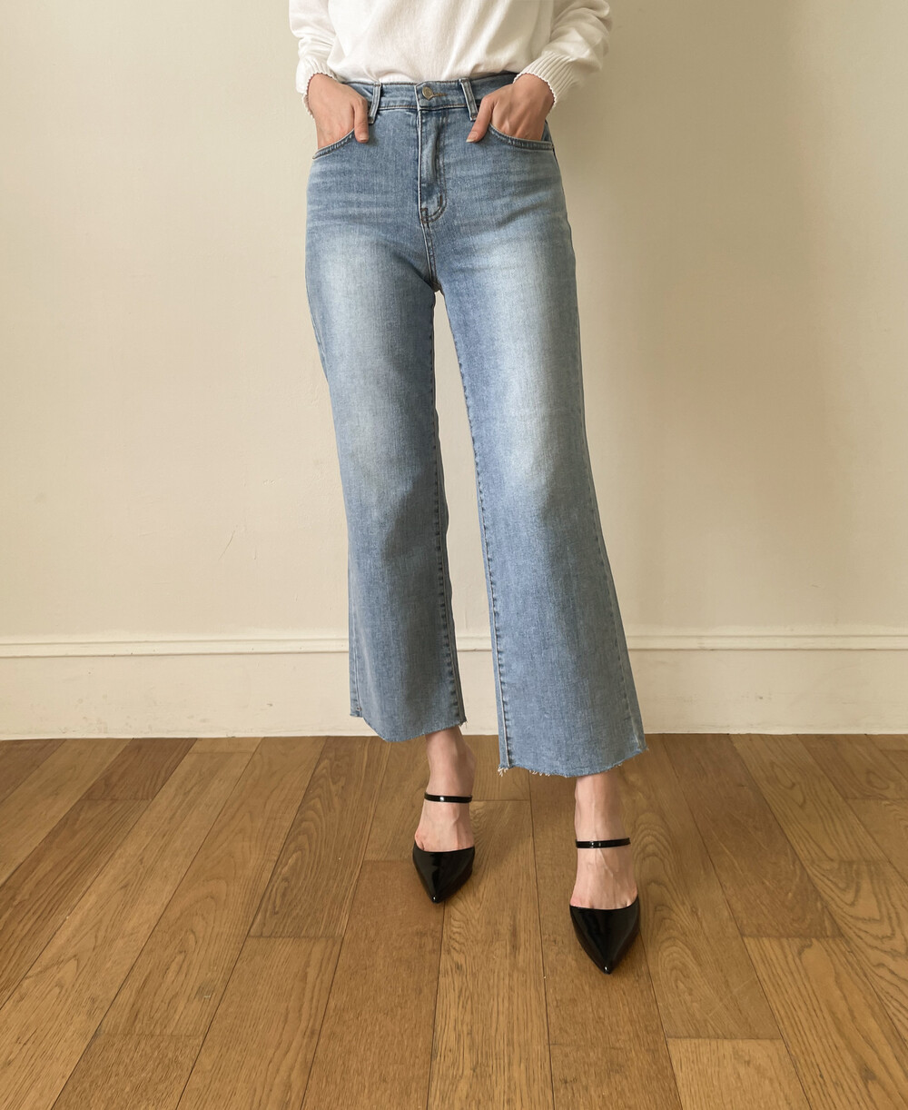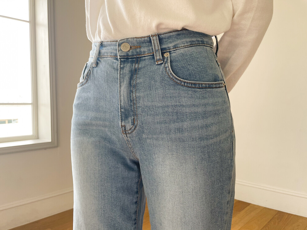 밑단으로 갈수록 넓어지는 세미 와이드 핏입니다.
