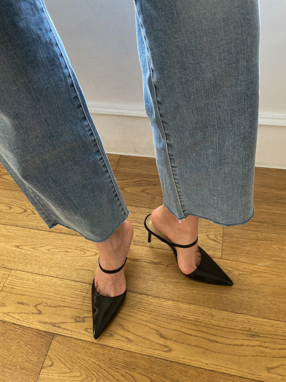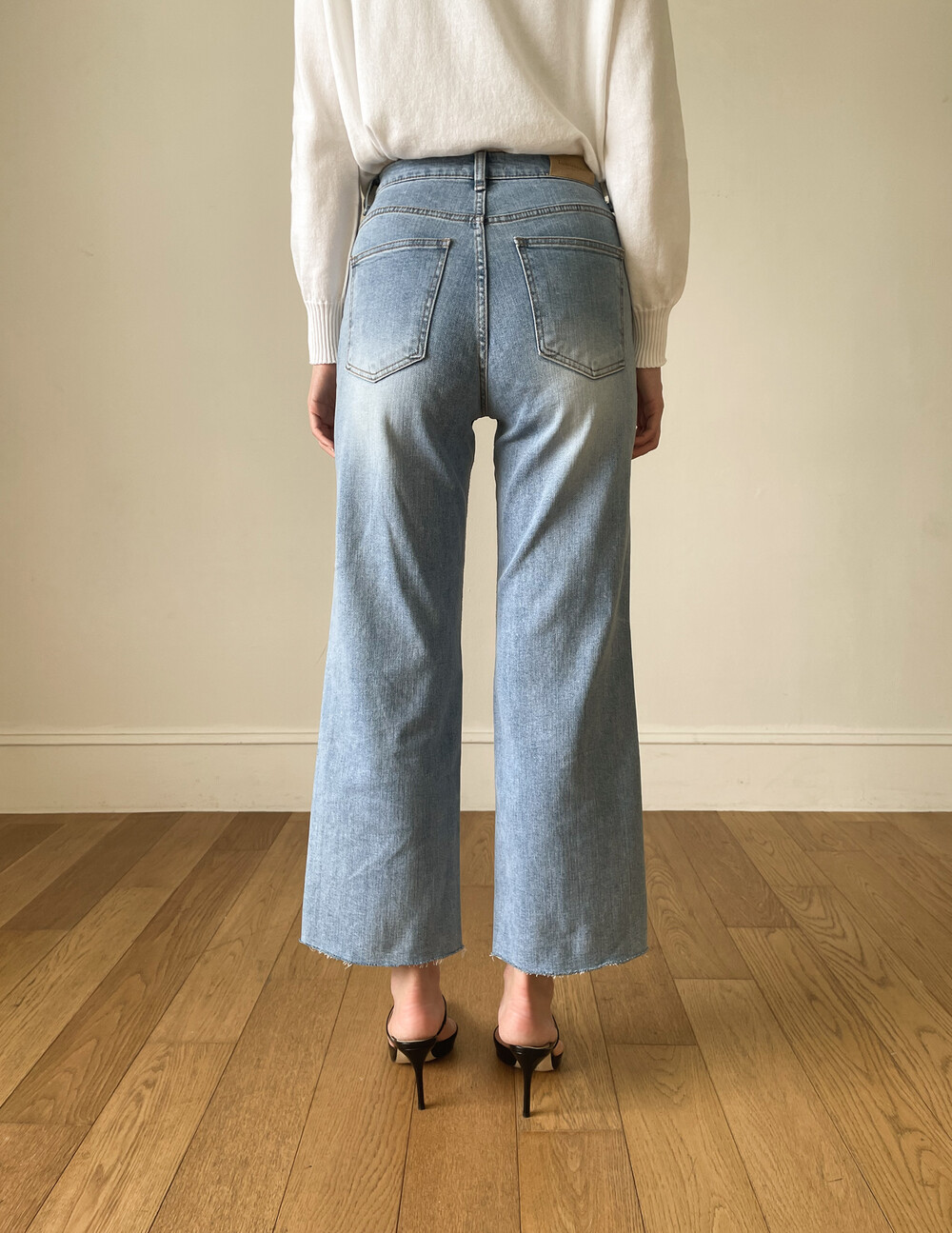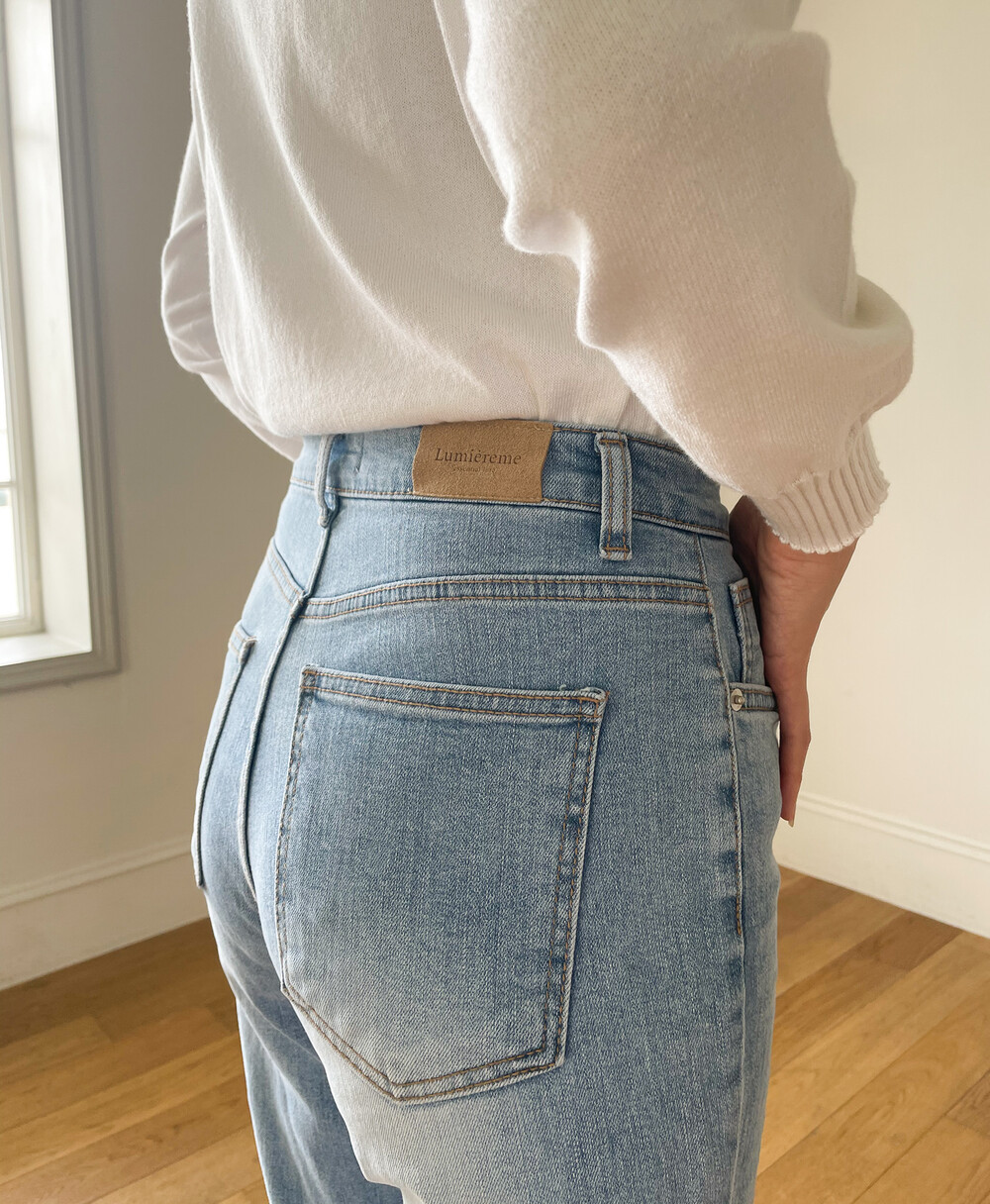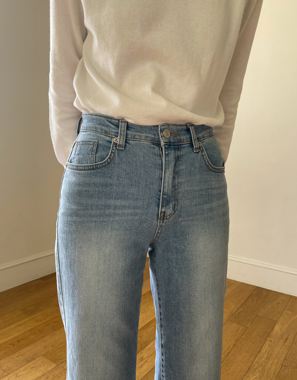 밑단으로 갈수록 넓어지는 세미 와이드 핏입니다.