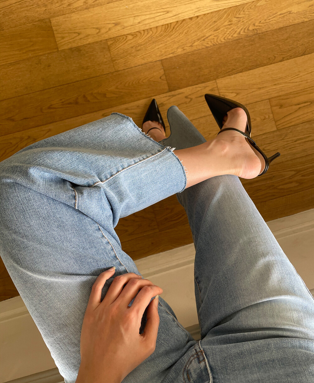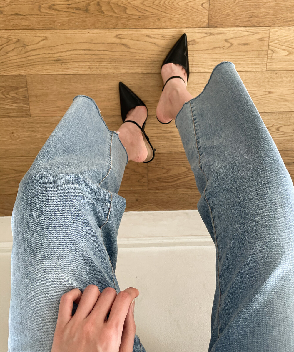 밑단은 네추럴 컷팅으로 기장조절이 용이합니다.