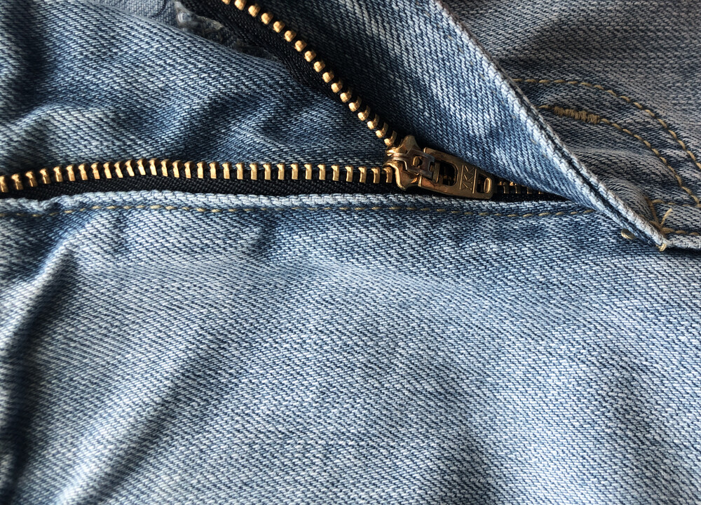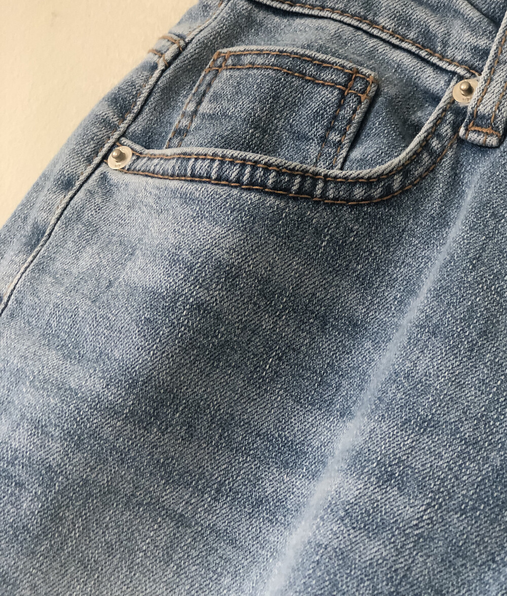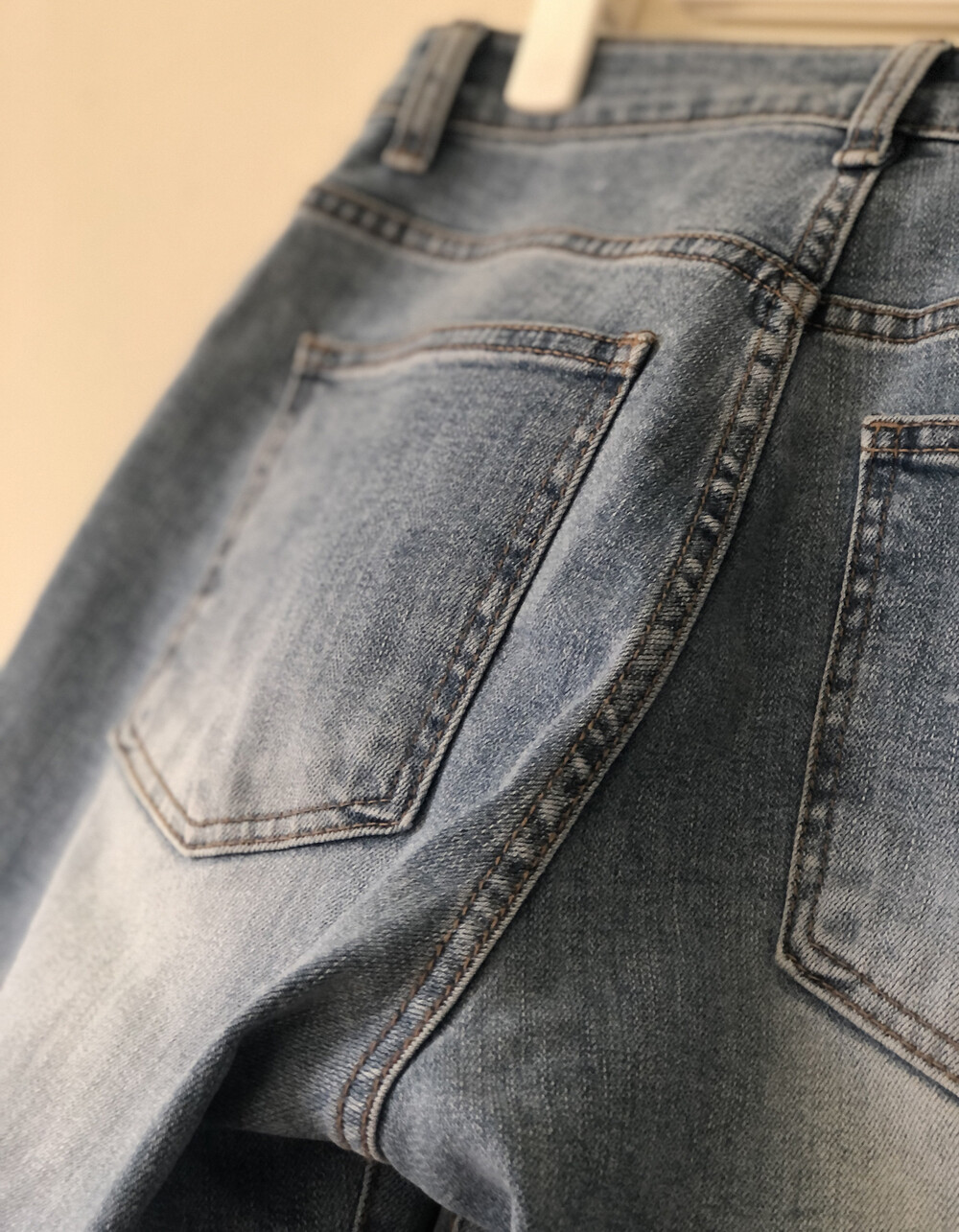 데님 소재, 워싱, 실, 지퍼, 리벳, 탭까지